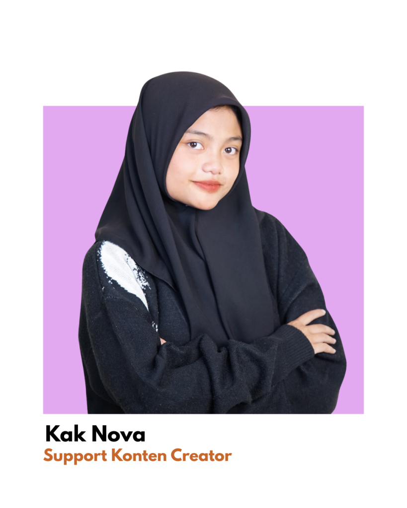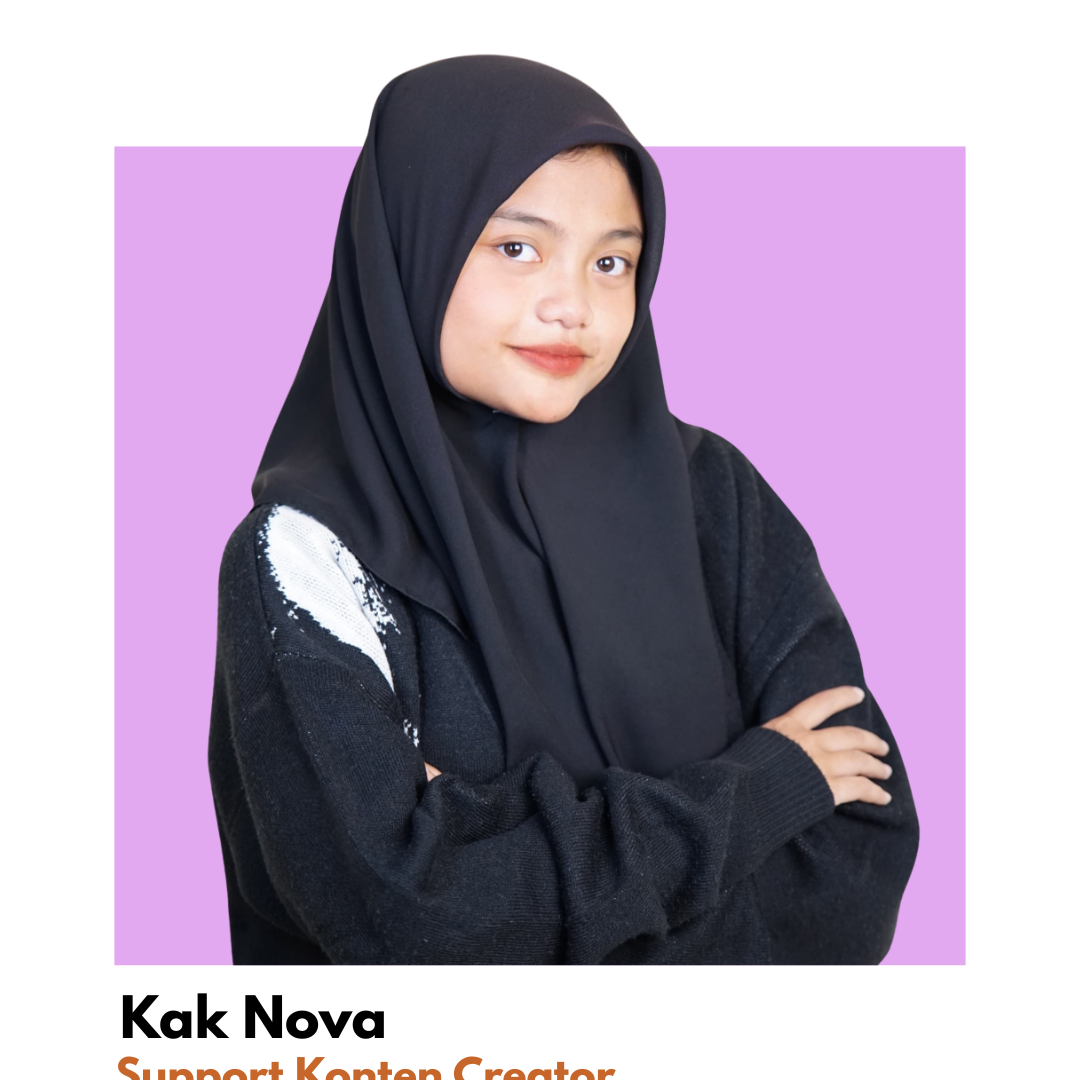 Di balik setiap konten yang tersusun rapi, ada Kak Nova yang memastikan proses kreatif berjalan tanpa hambatan. Ia membantu tim inti dengan menyiapkan data, merapikan materi, mengoordinasikan kebutuhan produksi, dan menjaga alur kerja tetap teratur.